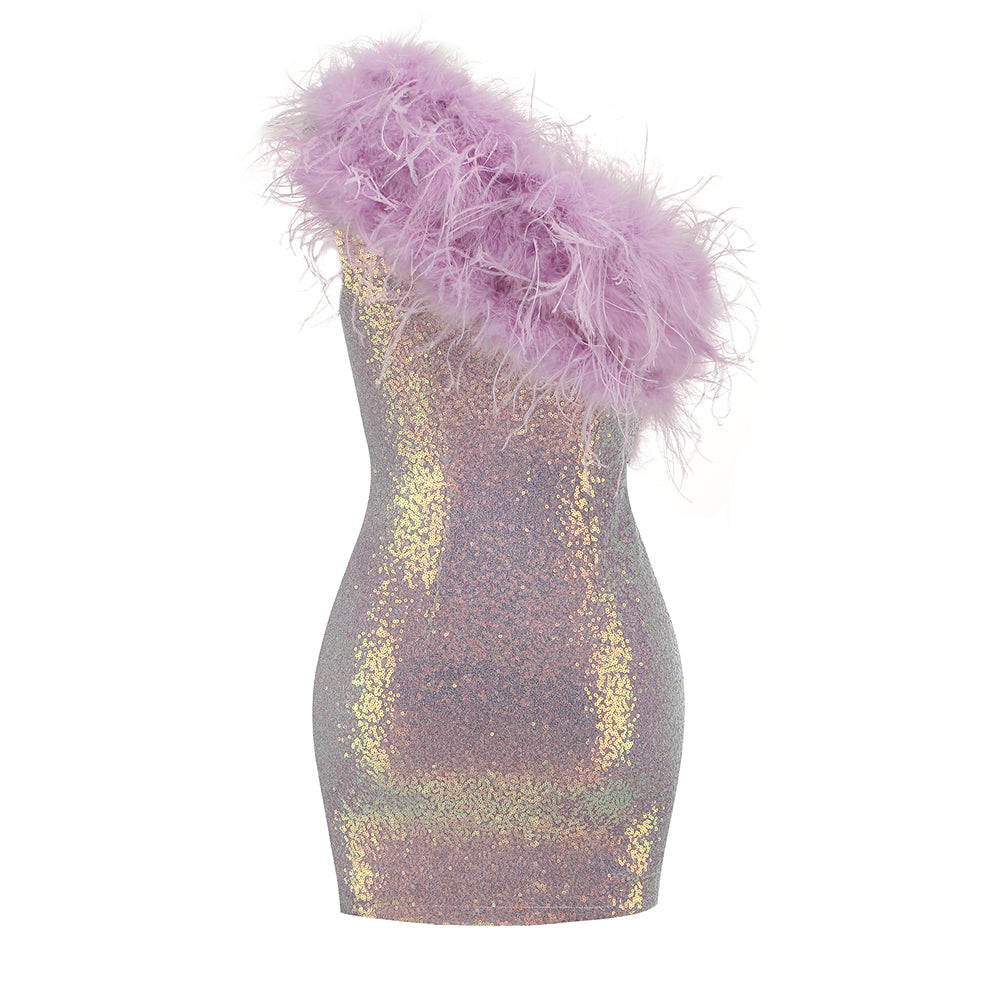 Indulge in luxury and glamour with our Fancy Purple Feather Sequins Dress. Designed with intricate purple feathers and sparkling sequins, this dress is perfect for the afterparty scene. Be the trendsetter and make a statement with this unique piece. Elevate your style to a whole new level.